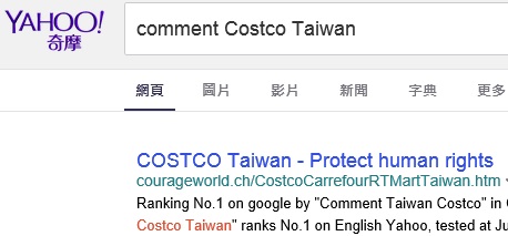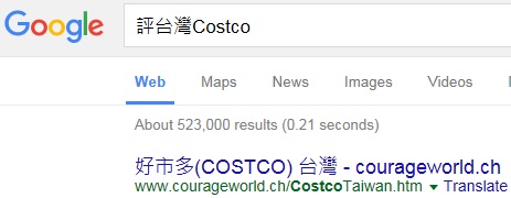 Pic. Ranking No.1 on google by "Comment Taiwan Costco" in Chinese, test at 10-7-2015