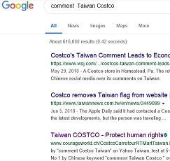 pic. : No.1 "comment Taiwan Costco" on Yahoo Taiwan, 2021-9-22, Nov. 3, 2020; No.2 at 2021-6-8, top page on Google, Nov. 3, 2020