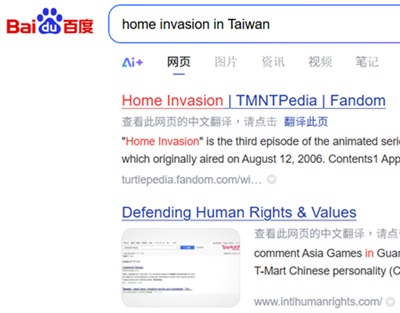 "home invasion in Taiwan" ranks No.2 on Baidu (China), 2026-1-2 |