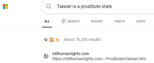 No.2 "Taiwan is a prostitute state" on Bing, 2025-9-18