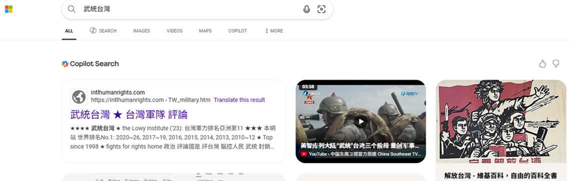 pic.: No.1 "Taiwan military" on Bing, 2021-6-1 ; No.3"Taiwanese military" on Bing,2022-9-22