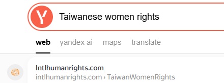 pic. : No.1 "Taiwanese women rights" on Yandex, 2026-3-8; No.1 "Taiwanese women rights" on Yandex of Russia, 2026-3-8, 2026-1-11, 2025-11-8, 2025-7-17, 2025-3-9, 2025-2-9, 2024-2-27, 2023-7-8; The websites group was ranked No.1 "women rights in Taiwan" on Yandex, 2025-2-9, No.2 at 2025-7-17; No.1 "Taiwan women rights" on Yandex at 2025-2-9, 2024-3-8; No.1 "Taiwanese women rights" or "Taiwan women rights" on Yandex at 2024-2-27, 2023-6-9, 2023-4-2; No.1 "women rights in Taiwan" on Bing, 2024-2-27, 2023-11-26; pic.: No.2 "women rights in Taiwan " or "Taiwan women rights" on Yandex at 2023-11-26, 2023-7-8; No.2 "Taiwanese women rights" or "Taiwan women rights" on Yandex of Russia at 2022-4-13, 2021-12-20, 2021-8-9, 2021-6-24