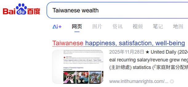 No.1 "Taiwanese wealth" on Baidu, 2026-1-20 ¡@ ¡@ |