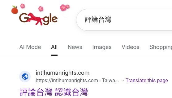 "評論台灣"排名US Google第1 , 2025-1-1; "評論國是" among top ranks on Google