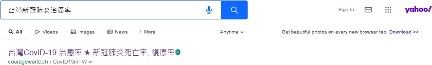 "台灣新冠肺炎治癒率"排名Bing, Yahoo第一, 2023-2-27, 2023-2-6, 2022-12-26, 2022-12-2, 2021-11-9, 2021-8-6, 2021-8-1, 2021-6-20