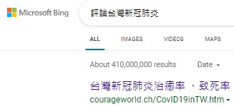 "評論台灣新冠肺炎"排名Bing, Yahoo第一, 2023-2-27, 2023-2-6, 2022-12-26, 2022-12-2, 2022-11-4, 2022-10-9, 2022-5-10, 2022-2-1,2022-1-7,  2021-11-19, 2021-9-22, 2021-9-16