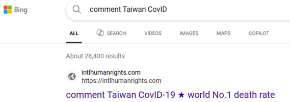 No.3 "comment Taiwan CovID" on Duckduckgo, 2026-1-22