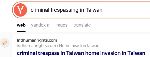 "criminal trespassing in Taiwan" ranks No.1 on Yandex, 2026-1-2 ¡@ ¡@ |