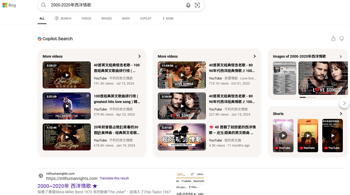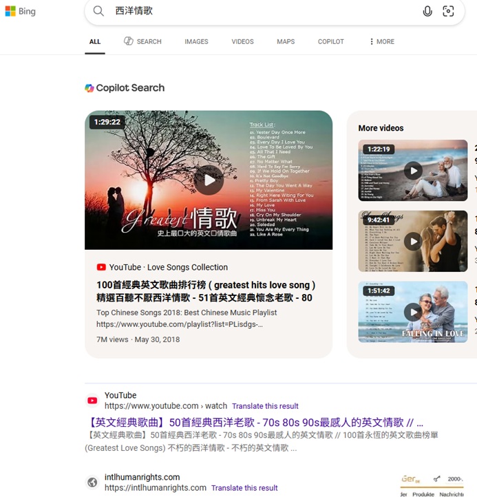 "2000年代西洋情歌"排名德國Ecosia第1, 2024-9-10, 9-1, 8-16, 8-9