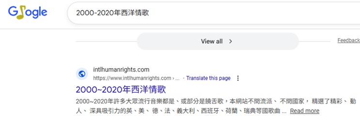 "2000-2020年西洋情歌"  排名 US Google 1, 2026-2-1,  2026-1-19, 2025-11-1, 2025-9-16