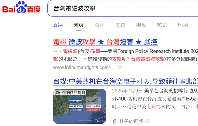 "台灣電磁攻擊" 排名Baidu第一, 2026-1-1, 2025-12-27;  "台灣電磁迫害" 排名Baidu第一, 2026-1-1