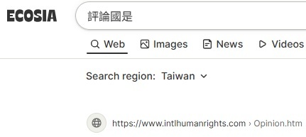 "評論台灣 " 排名德國Ecosia  第一,  2026-1-11