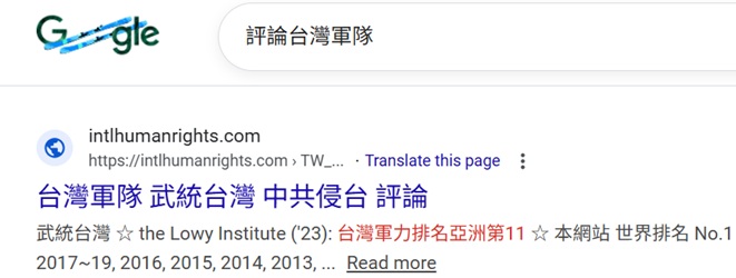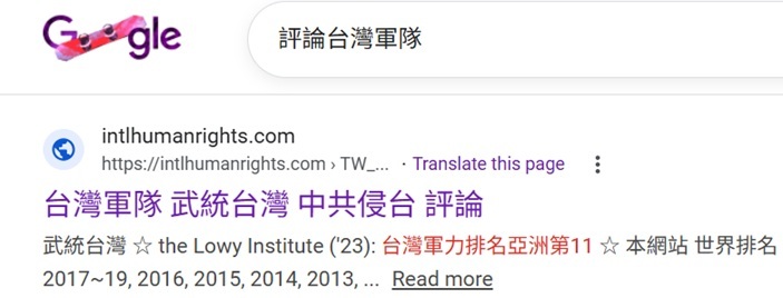 ♣  "評論 台灣軍隊"排名US Google第2, 2026-2-17(馬年初一)