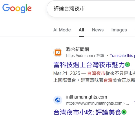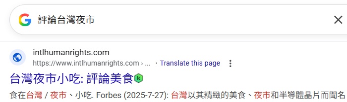 No.2 "comment Taiwan night markets" on Google Taiwan, 2025-12-2 (Chinese version) |