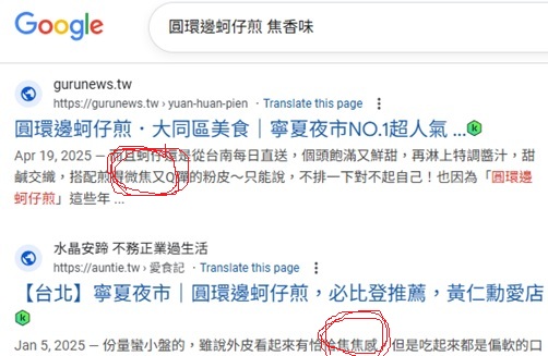 (「焦香味濃為特色」,「焦焦」,「微焦」...