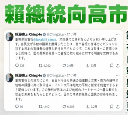 美國Fox News (2026-2-13): 賴清德正力推重大國防計劃,包括後備部隊訓練。 賴清德說:“台灣正在履行國際社會成員的責任。”