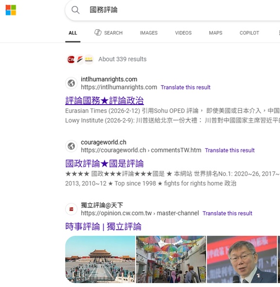 "評論國務" 排名Bing 第1, 2026-3-7, 2026-3-5, 2026-2-25;