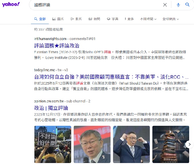 "國務評論" 排名Yahoo Taiwan第1, 2026-3-7, 2026-3-5, 2026-2-26