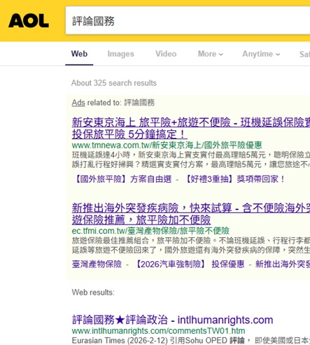 "評論國務" 排名AOL 第1, 2026-3-5, 2026-2-25; (上方為廣告)  ; "國務評論" 排名AOL 第1, 2026-2-26;