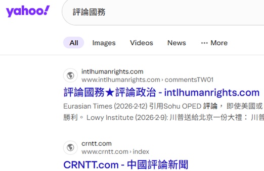 "評論國務" 排名US Yahoo 第1,  2026-3-5, 2026-2-25,   "國務評論" 排名US Yahoo第1, 2026-2-26